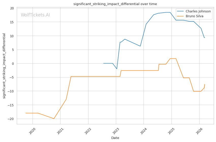 Significant Striking Impact Differential increased the score by 3.0. Johnson's +9.31 differential versus Silva's -7.6 represents a massive gap in striking effectiveness.