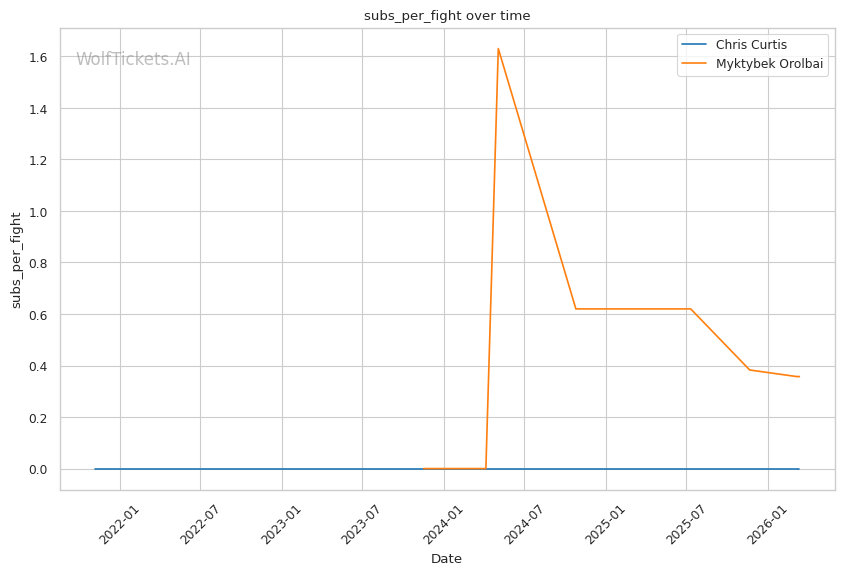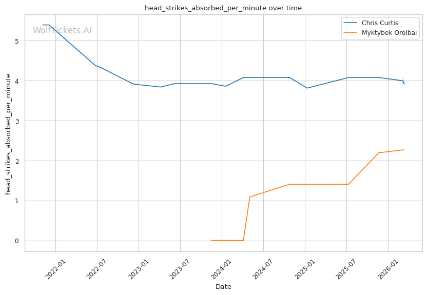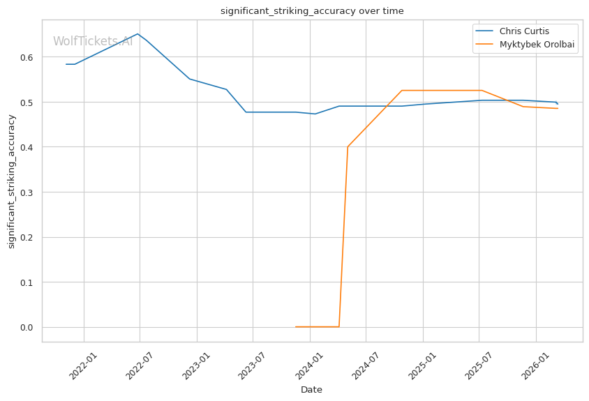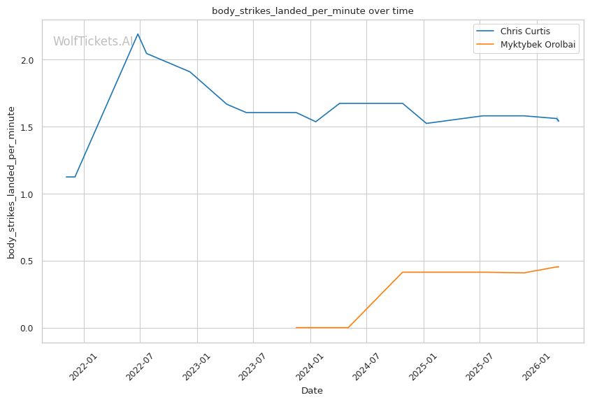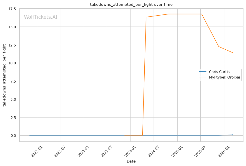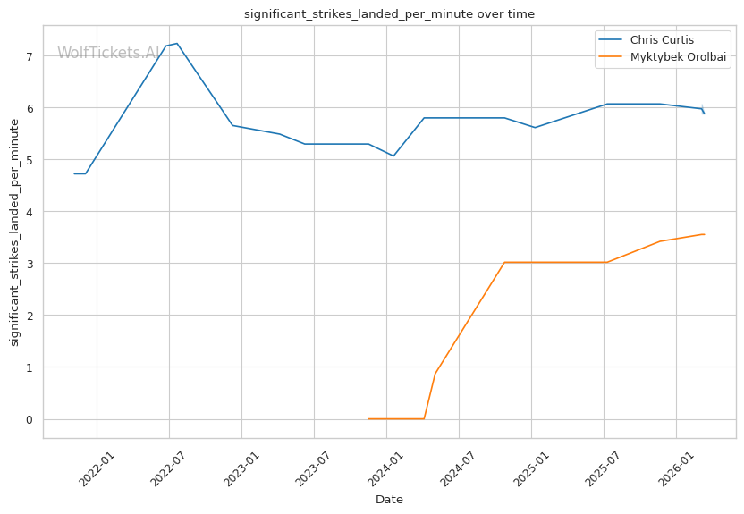 | Stat | Chris Curtis | Myktybek Orolbai | Weight Class Average | |