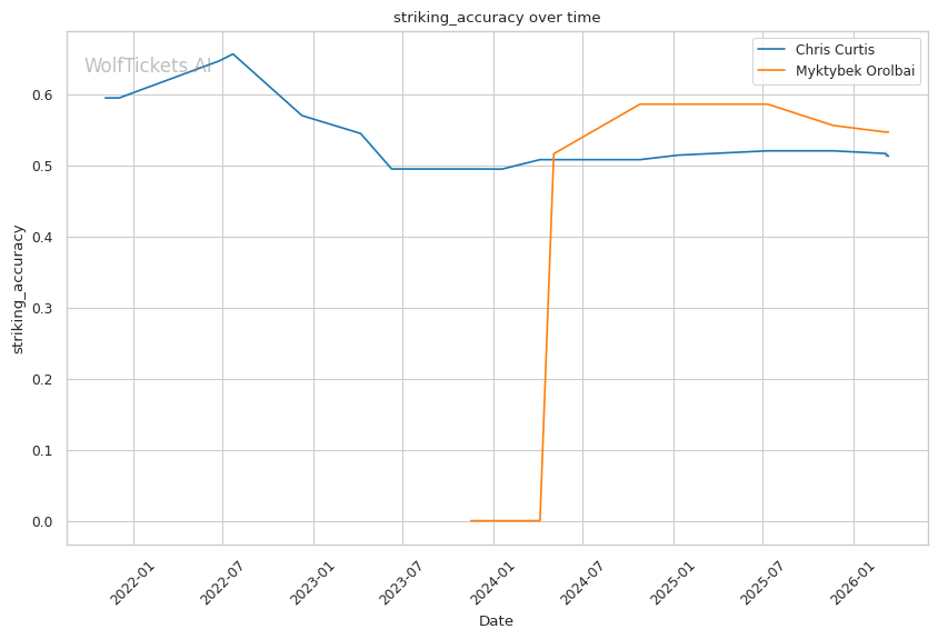 This matchup presents a fascinating clash between Curtis's counter-punching and Orolbai's forward pressure. The question becomes: can Curtis time Orolbai's predictable entries, or will Orolbai's relentless advancing overwhelm Curtis's static footwork?