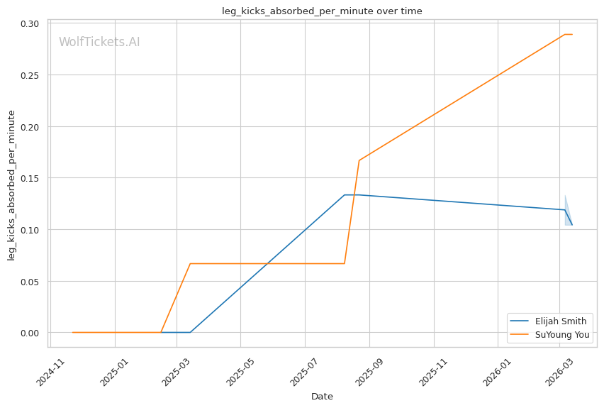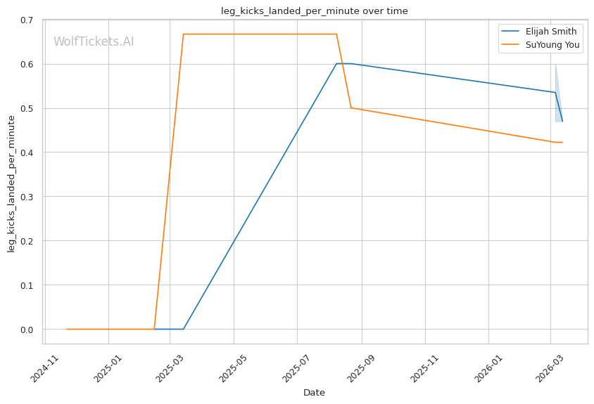 You's inside low kicks could compromise Smith's wrestling base over time. If he can chop the lead leg early, Smith's level changes become less explosive.