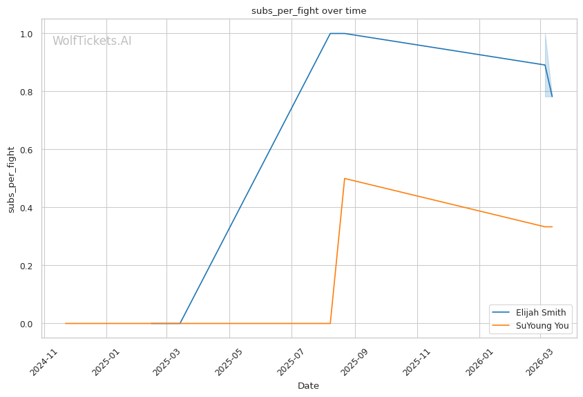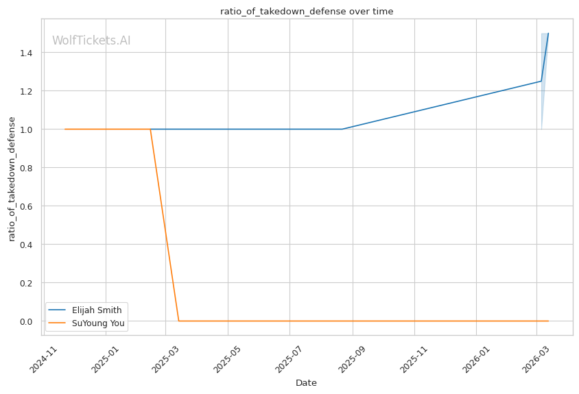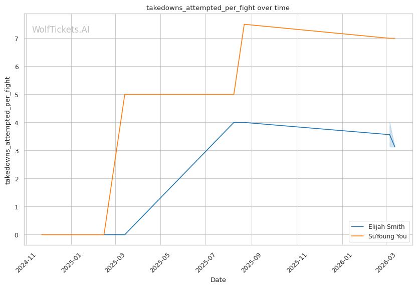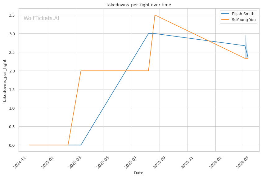 You's takedown defense ratio of 0.0 is a massive red flag against a wrestler who averages 2.35 takedowns per fight. Smith should be able to get this fight to the mat.