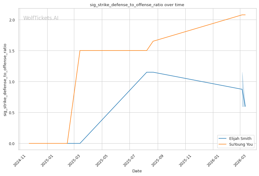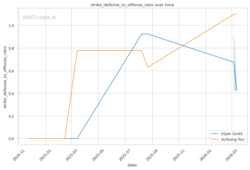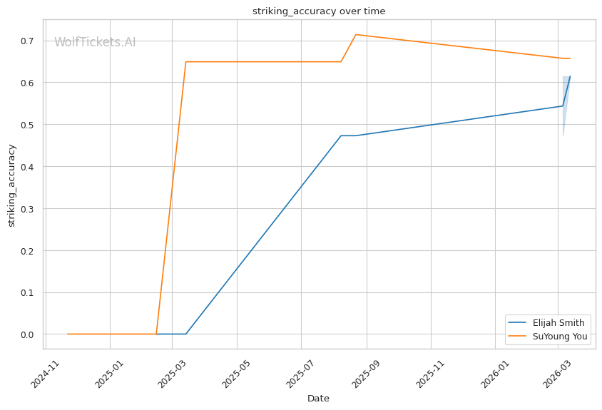 You's recent striking defense percentage of 87.9% is impressive, but Smith's wrestling changes the equation entirely.