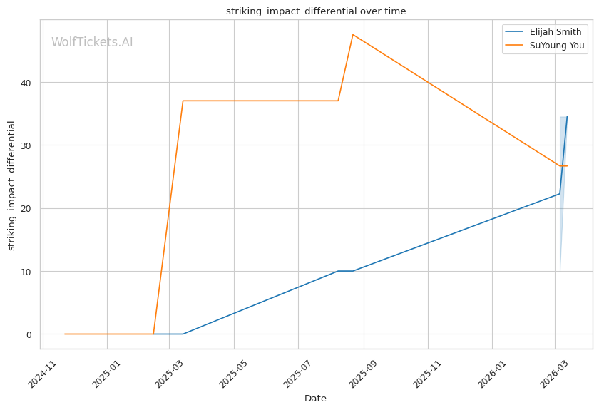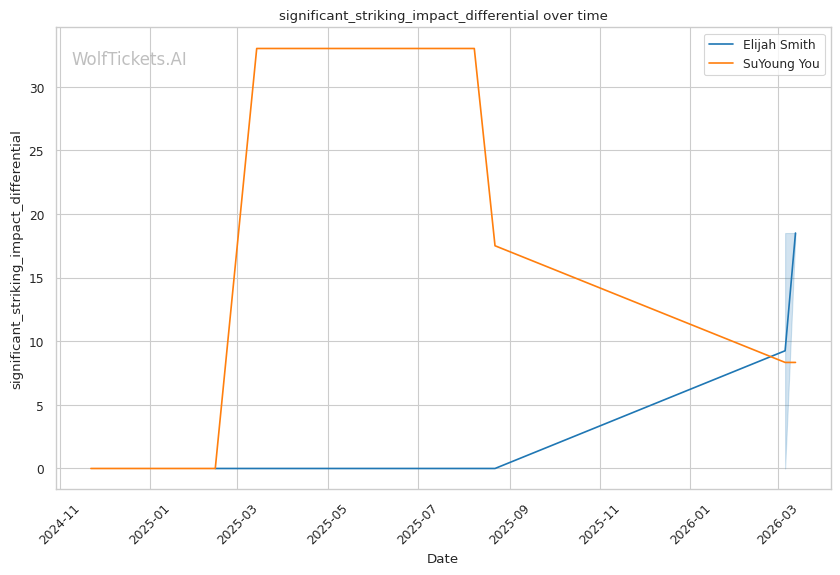 Significant Striking Impact Differential increased the score by 2.0 points. Smith lands more meaningful strikes relative to what he absorbs.