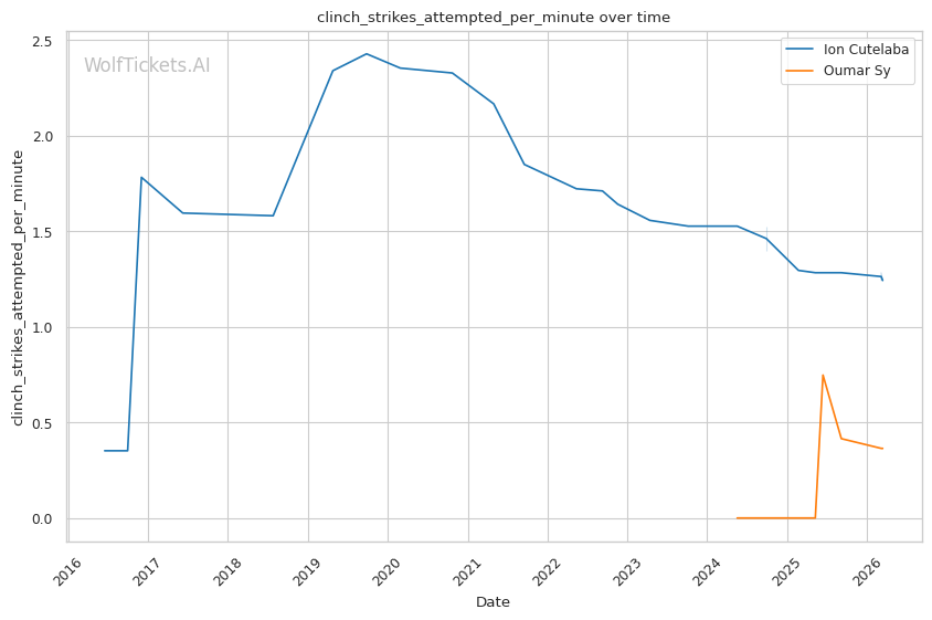 | Clinch Strikes Attempted per Minute | 1.243 | 0.364 | 0.501 | |