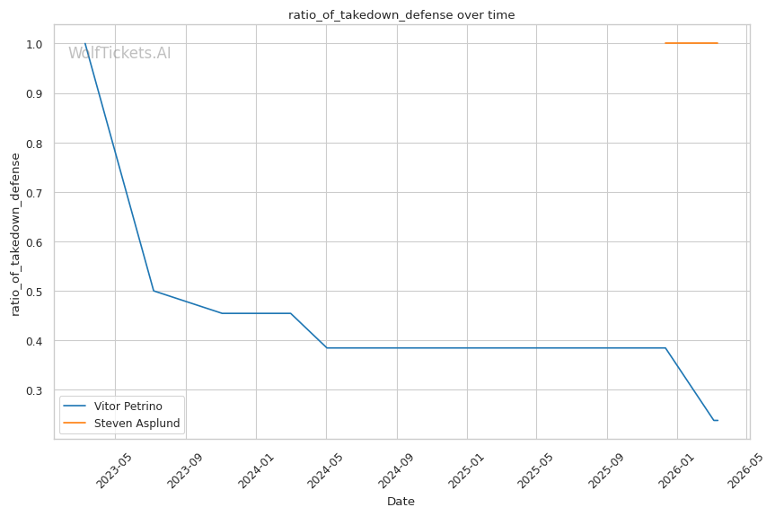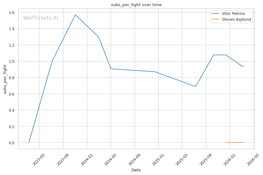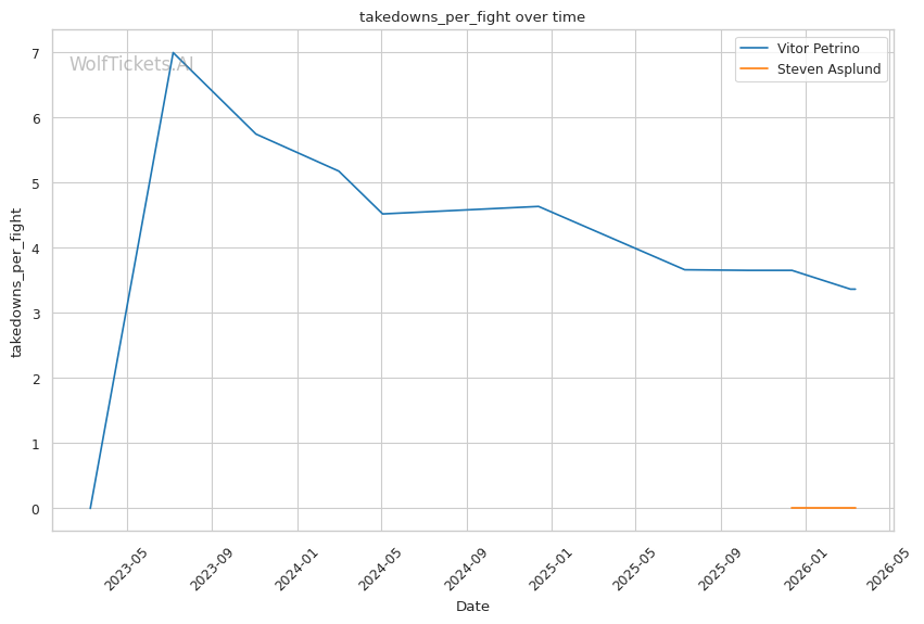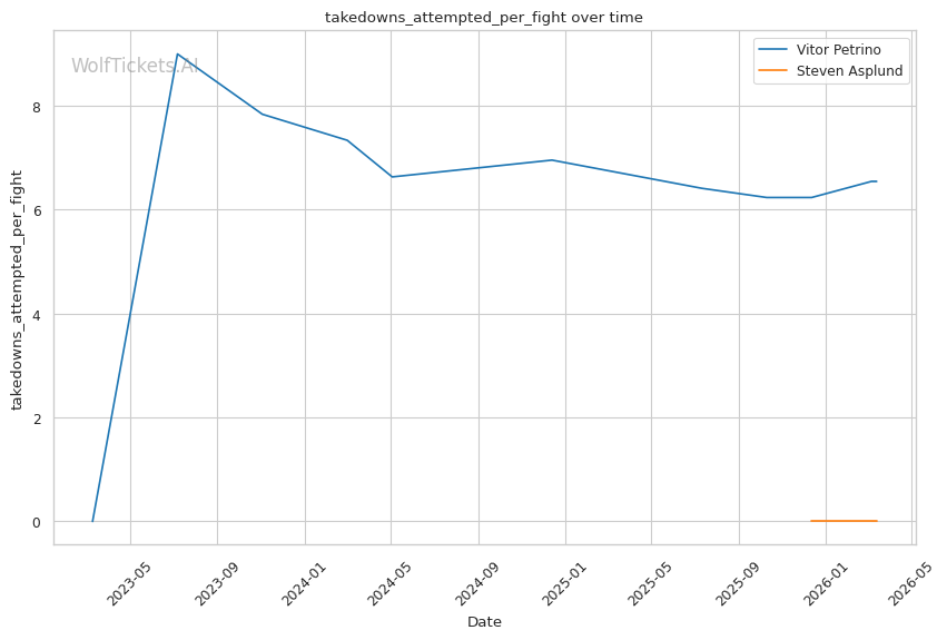 Petrino's grappling is a clear advantage. Asplund has zero takedowns in his UFC career and no grappling data to analyze. Petrino averages 3.9 takedowns per fight recently and showed elite submission skills against Lane. If Petrino can get this fight to the ground, Asplund may have no answers.