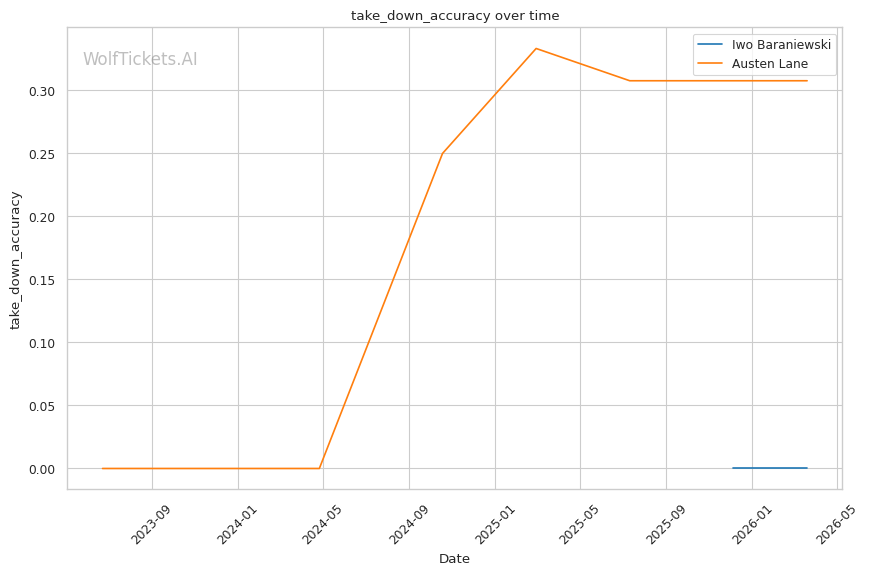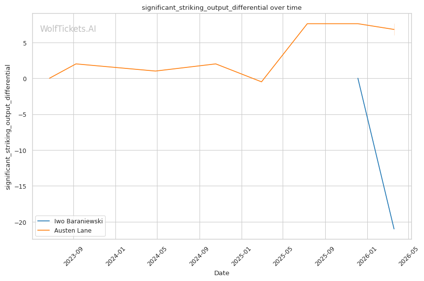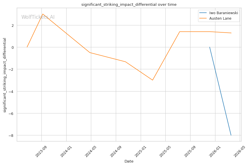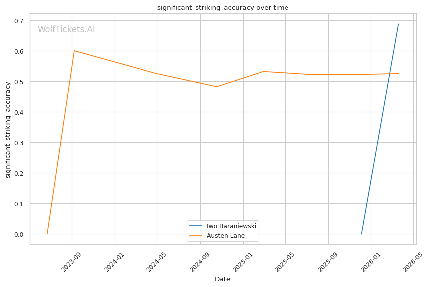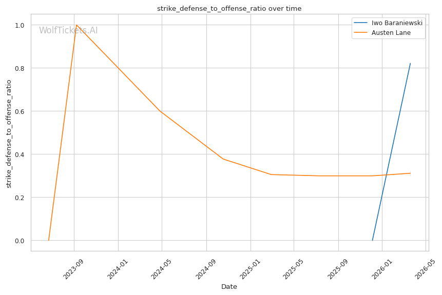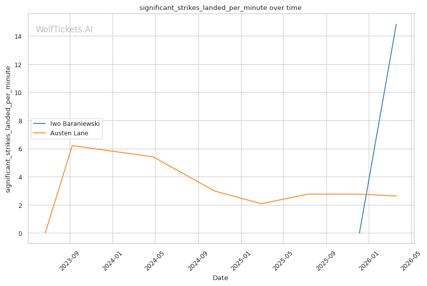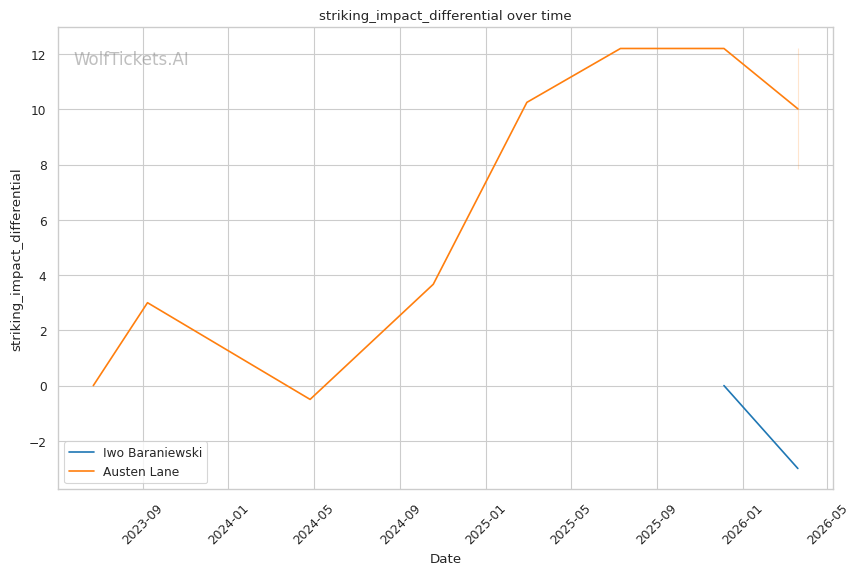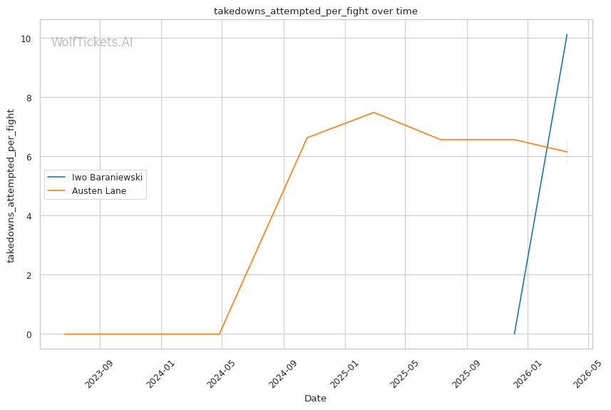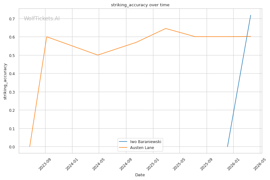 Lane's takedown attempts could theoretically test Baraniewski's grappling, though Lane's 30.8% takedown accuracy suggests he won't consistently get fights to the mat. And if he does, Baraniewski's judo and BJJ credentials make that a dangerous place for Lane.