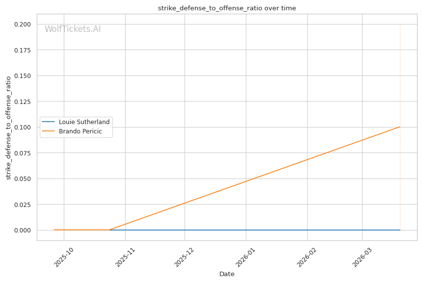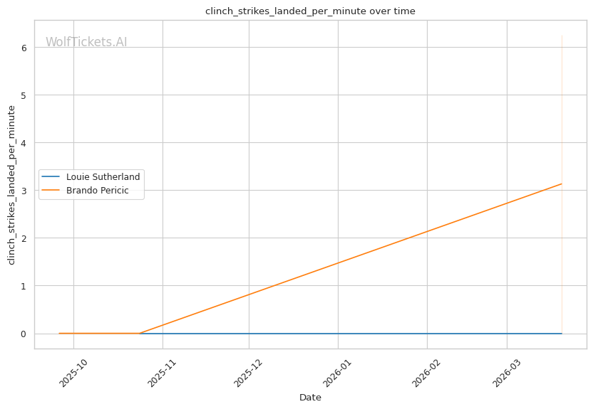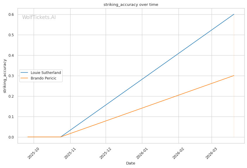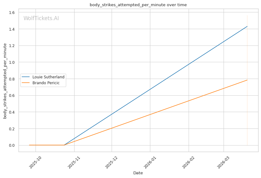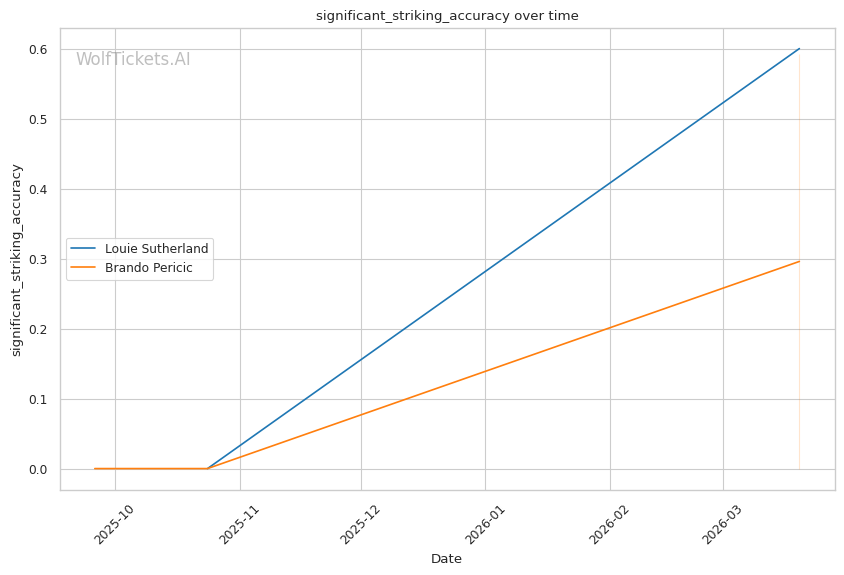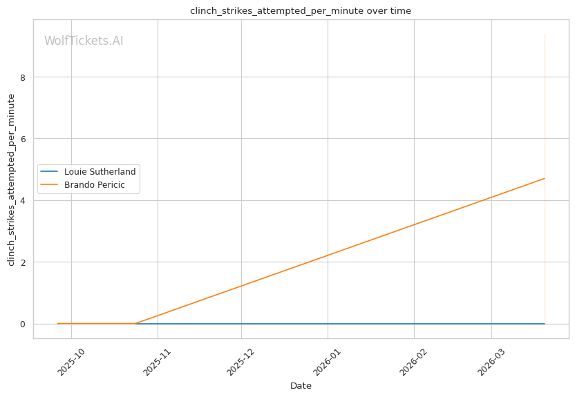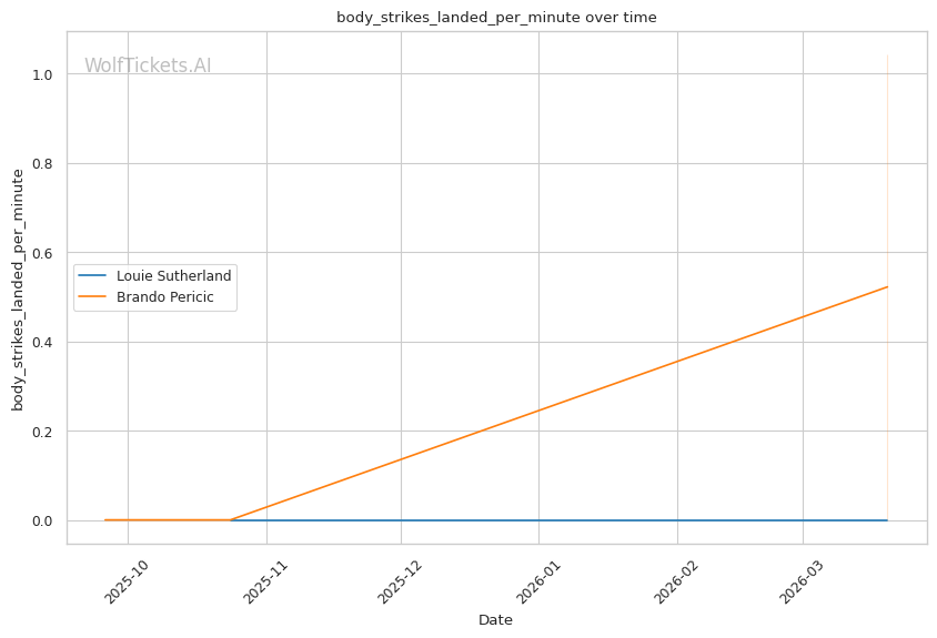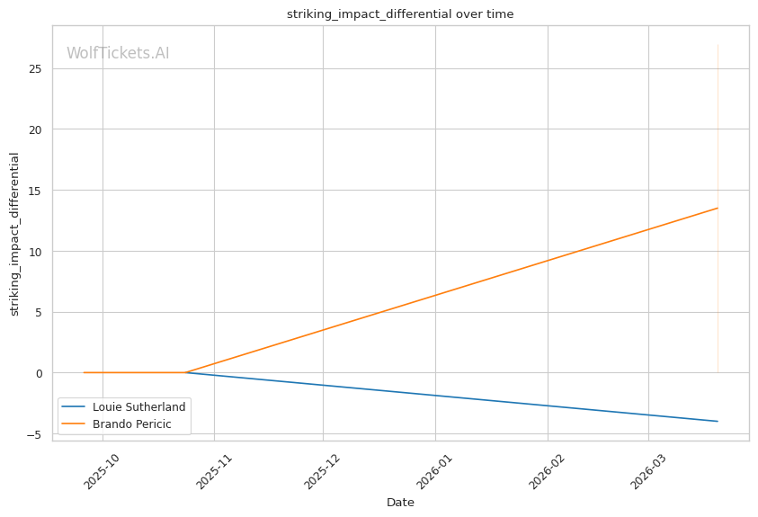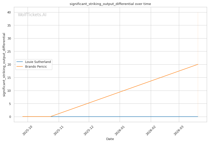 Historical Parallel: This resembles matchups where volume strikers face power punchers. The key question: can the power guy land before getting overwhelmed? Sutherland's 0.71 strikes per minute to the head versus Pericic's 12.0 tells you who controls the pace.