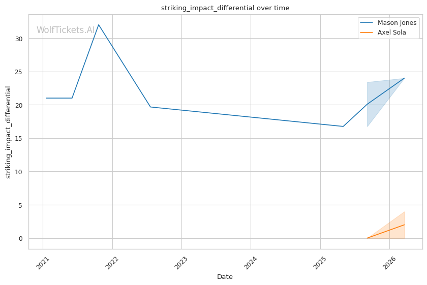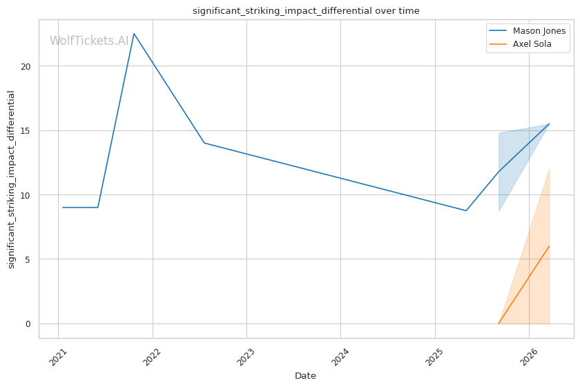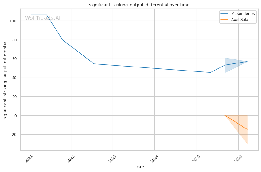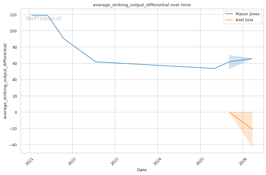 Negative Output Differential: Sola's average striking output differential of -42 means he's being outworked in volume. Against McKee, he was throwing fewer strikes but landing harder. Against a high-volume pressure fighter like Jones, this approach could backfire on the scorecards if the fight goes to decision.