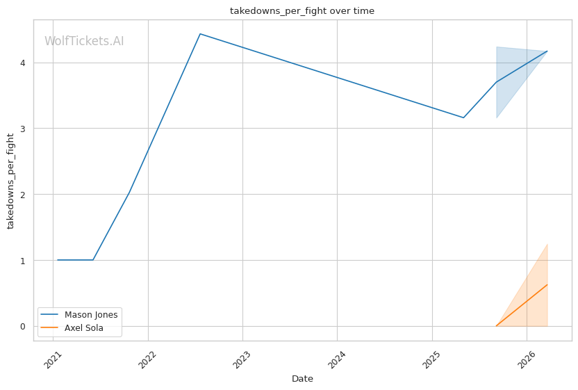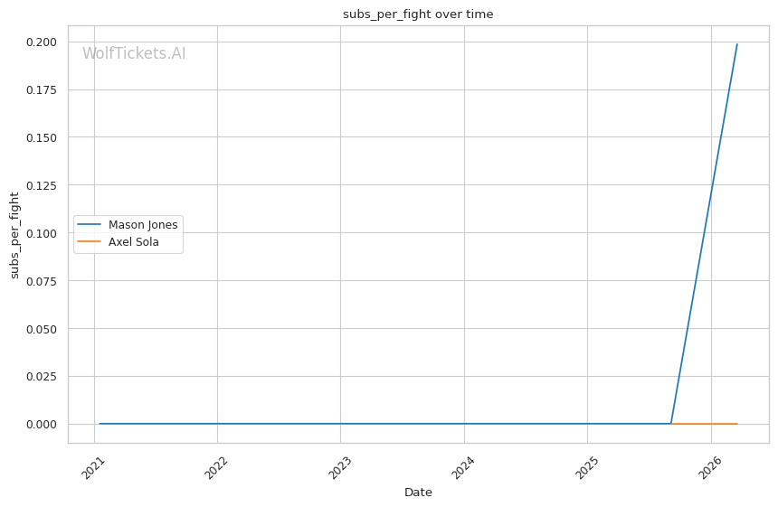 Mason Jones should handle Axel Sola. The Welshman brings superior experience, proven UFC-level skills, and a pressure style that will test everything about the undefeated Frenchman. Sola's power is dangerous, but one fight at welterweight doesn't tell us enough about his ability to handle Jones's volume and grappling at lightweight. Jones's jab-to-body-to-takedown sequences will create problems Sola hasn't faced before. WolfTicketsAI has Jones winning this fight, and the data supports that conclusion.