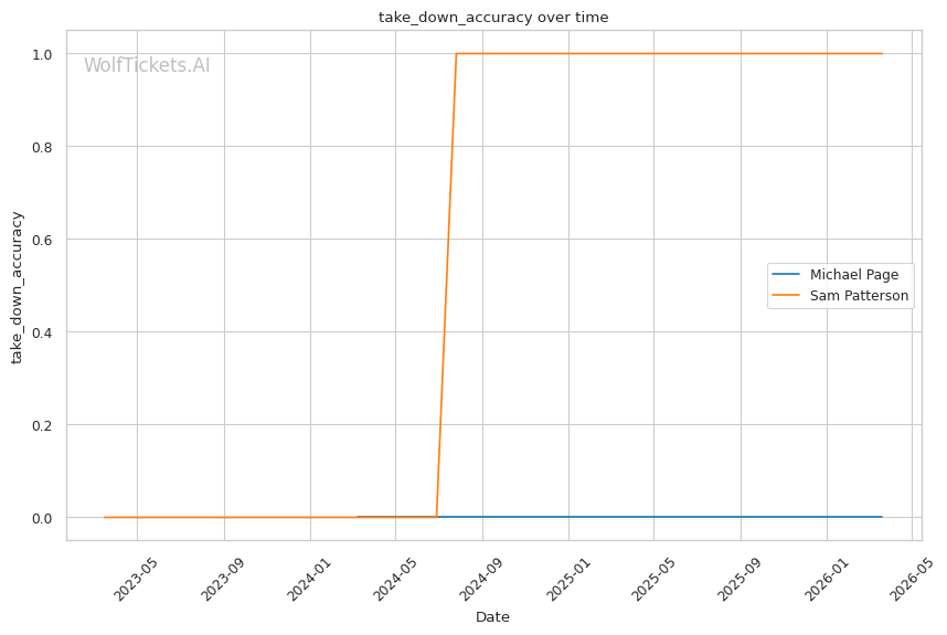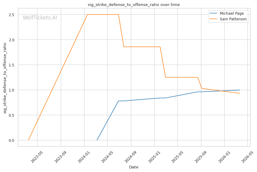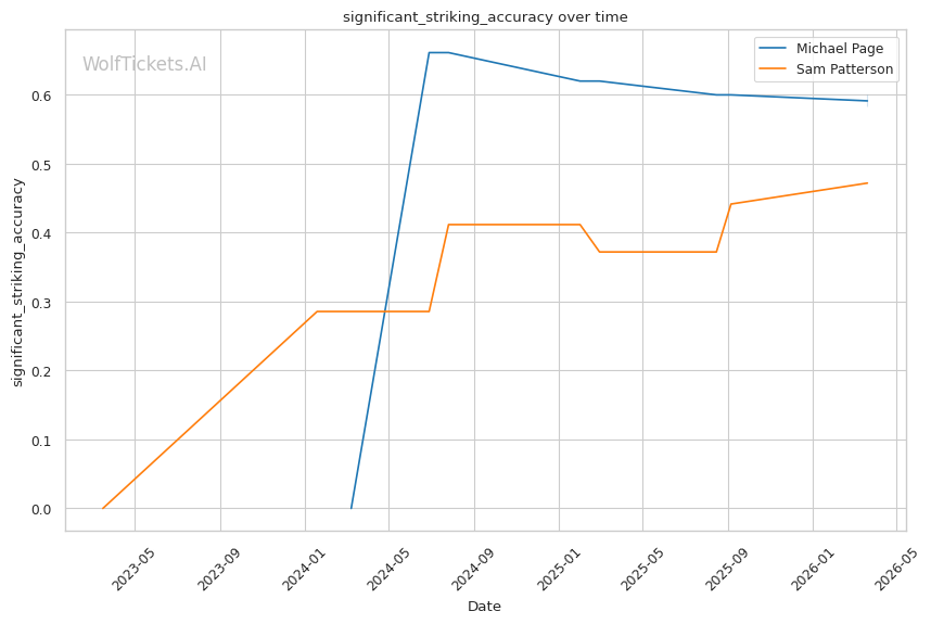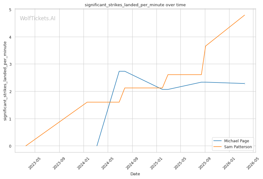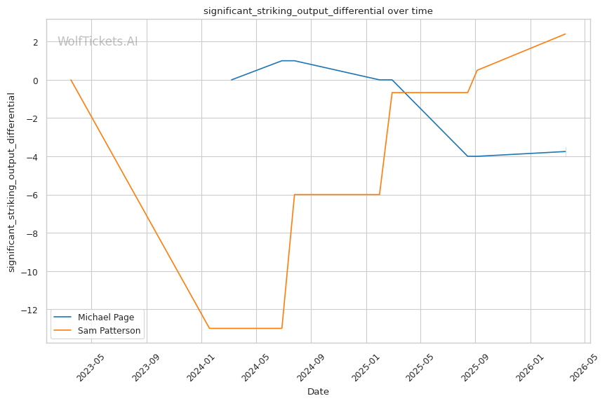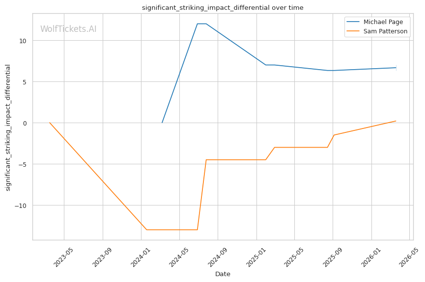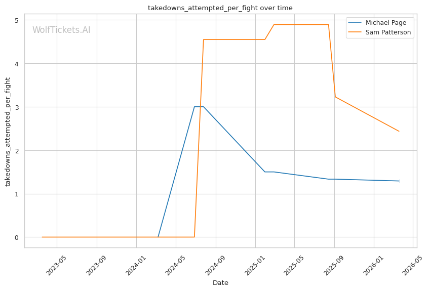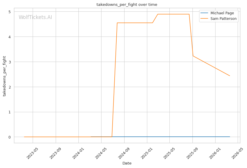 Patterson's best path involves using his jab to establish range and mixing in level changes to threaten takedowns. Page's takedown defense sits at 54.5% career and 68.9% recently. Not terrible, but not elite. If Patterson can get Page down, the grappling mismatch heavily favors the younger fighter.