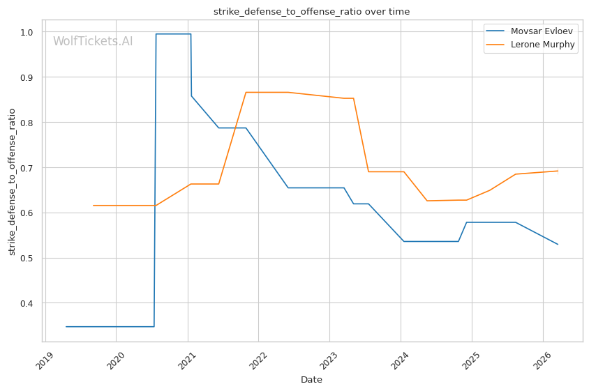 | Significant Striking Defense to Offense Ratio | 103.71% | 89.97% | 105.77% | |