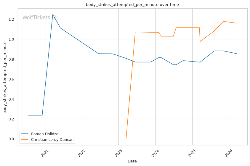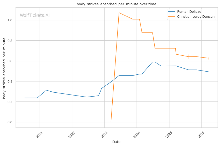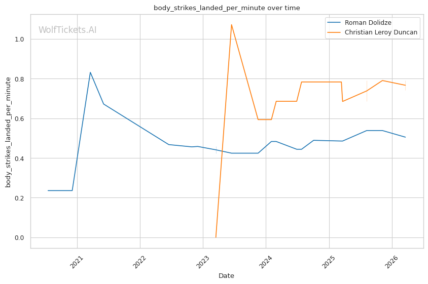 | Body Strikes Landed per Minute | 0.505 | 0.742 | 0.730 | |