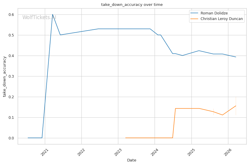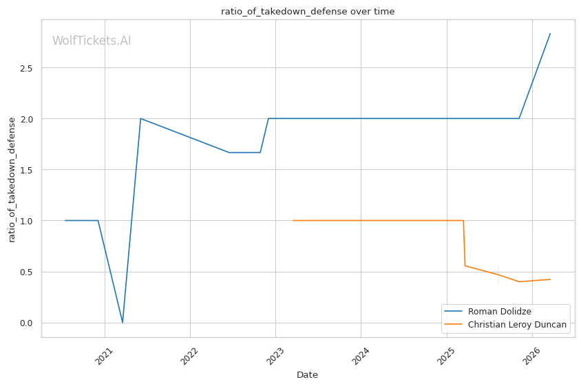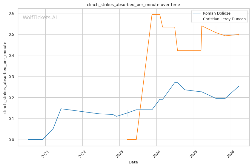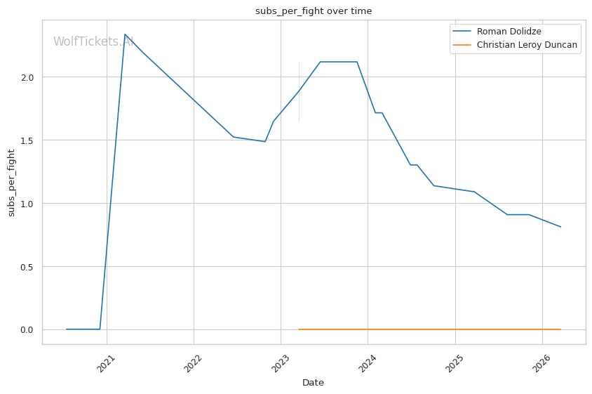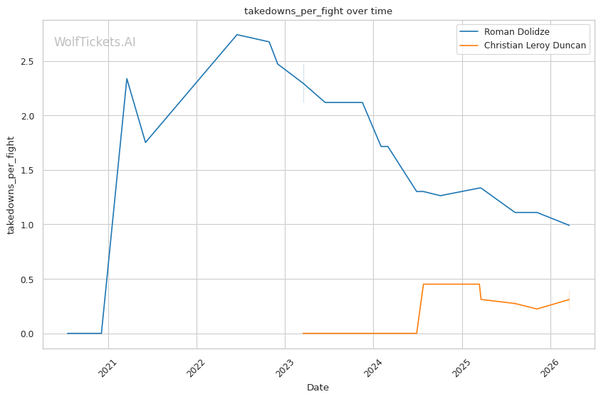 Dolidze's 33% takedown defense is irrelevant if Duncan doesn't shoot. But it shows his general defensive wrestling awareness is poor.