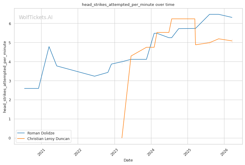 | Head Strikes Attempted per Minute | 6.308 | 4.971 | 5.501 | |