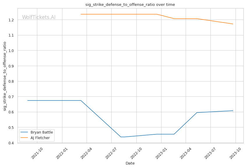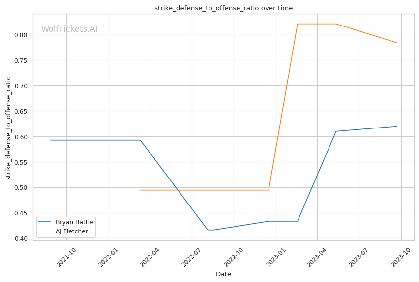 | Significant Striking Defense to Offense Ratio | 61.99% | 117.19% | 108.32% | |