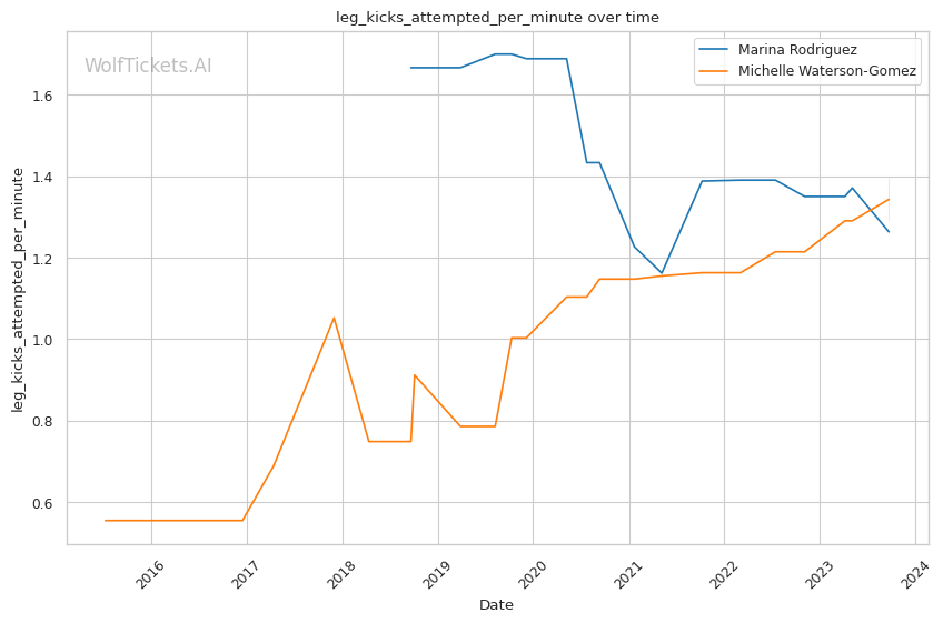 | Leg kicks Attempted per Minute | 1.263 | 1.396 | 0.812 | |