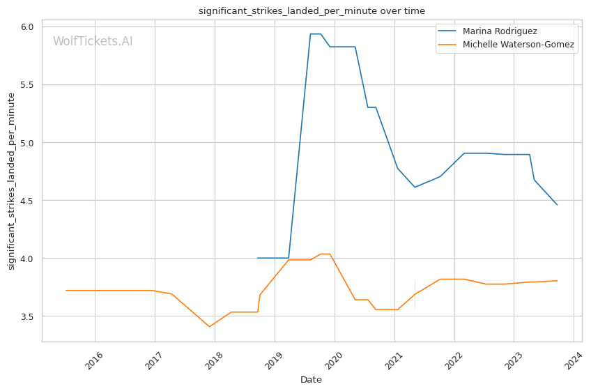 | Stat | Marina Rodriguez | Michelle Waterson-Gomez | Weight Class Average | |