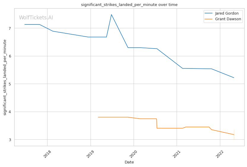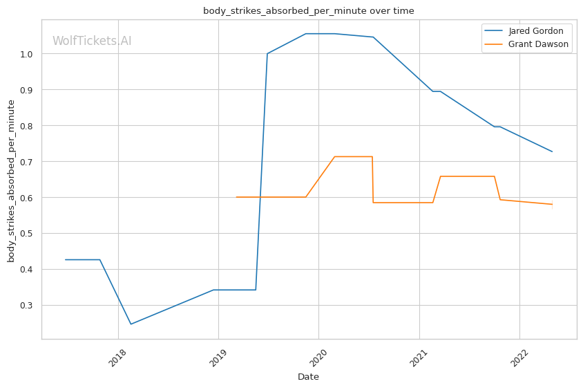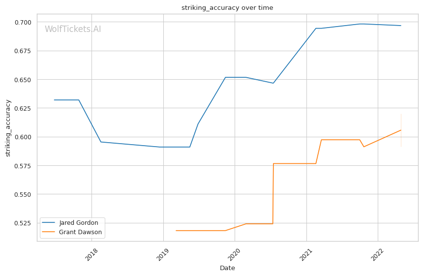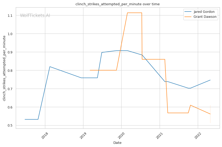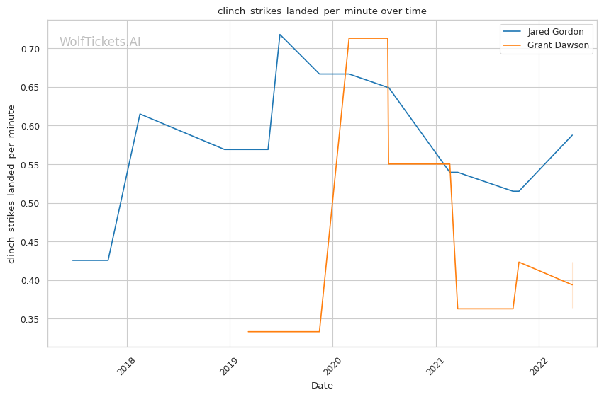 | Stat | Jared Gordon | Grant Dawson | Weight Class Average | |