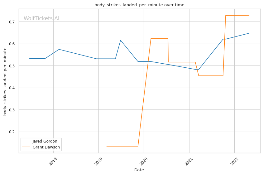 | Body Strikes Landed per Minute | 0.647 | 0.729 | 0.763 | |