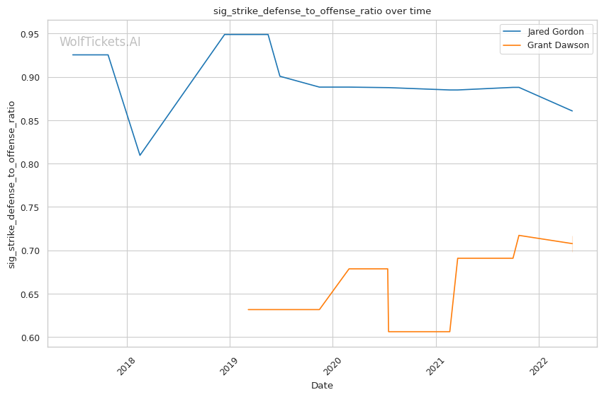 | Significant Striking Defense to Offense Ratio | 86.07% | 69.82% | 125.89% | |