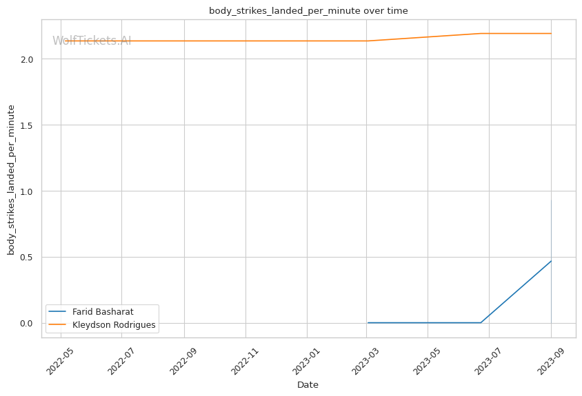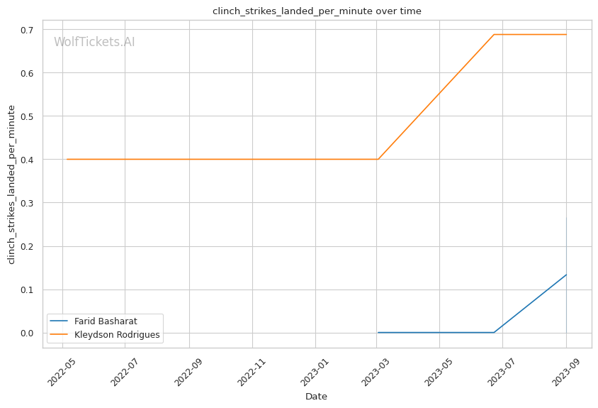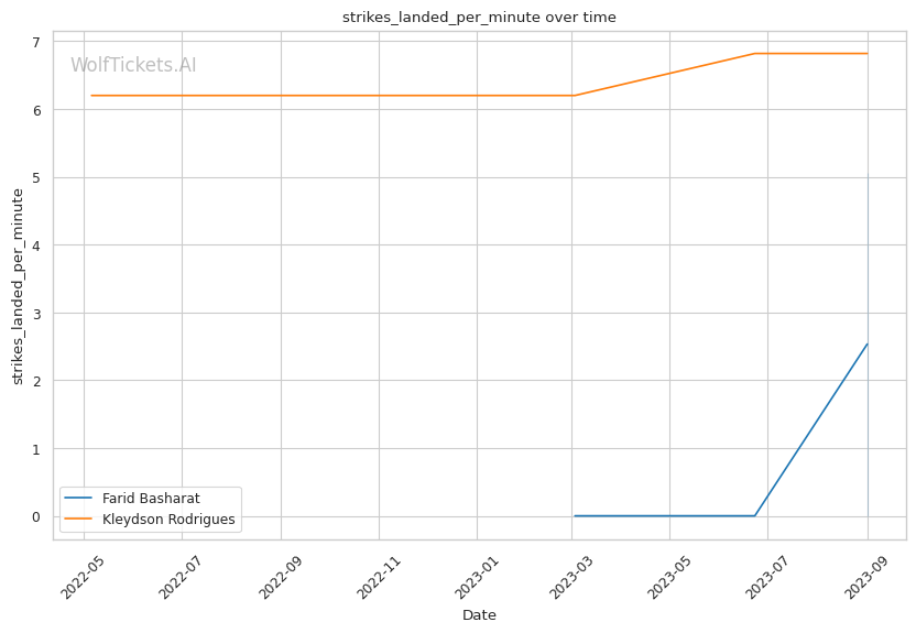 | Stat | Farid Basharat | Kleydson Rodrigues | Weight Class Average | |