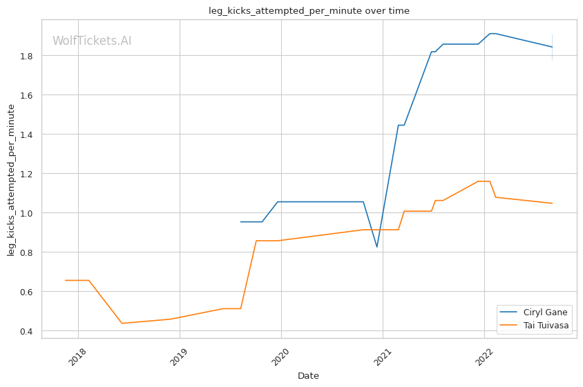 | Leg kicks Attempted per Minute | 1.775 | 1.047 | 0.877 | |