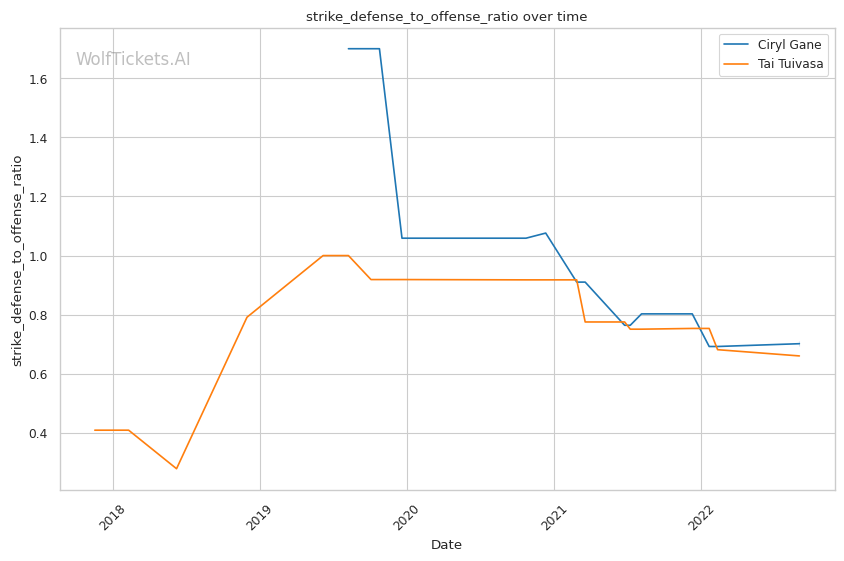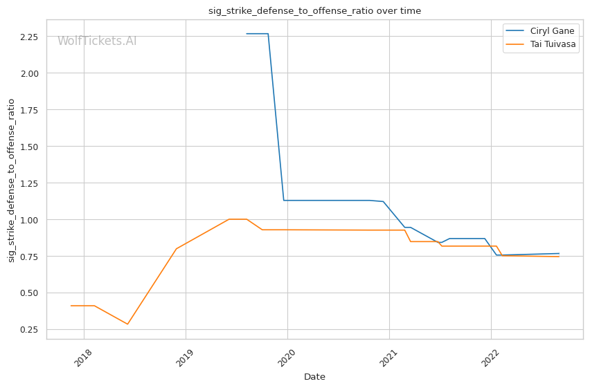 | Significant Striking Defense to Offense Ratio | 77.65% | 74.46% | 111.62% | |