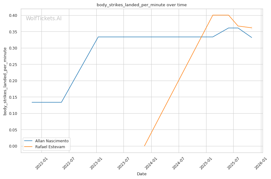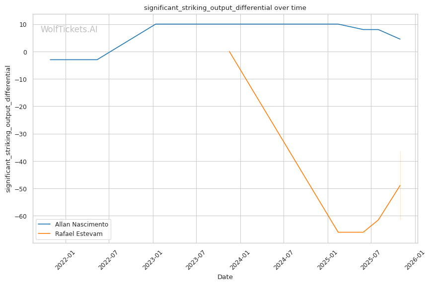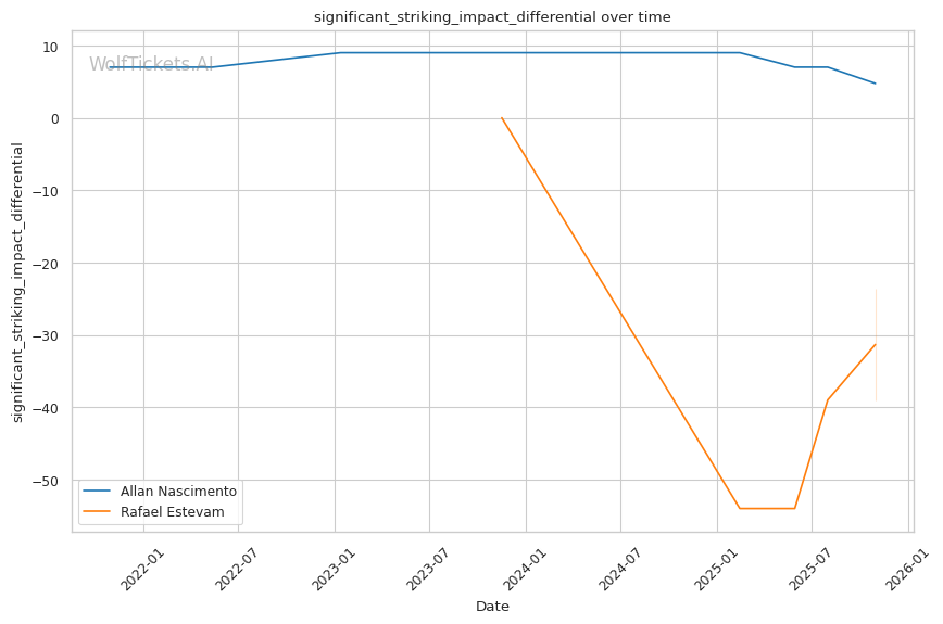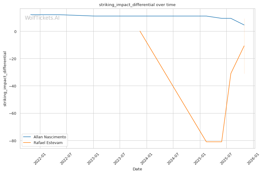 Striking Differential: Estevam's -42.78 recent significant striking impact differential versus Nascimento's +7.61 recent significant striking impact differential shows a massive gap. Even with Nascimento's striking limitations, he'll win stand-up exchanges decisively.