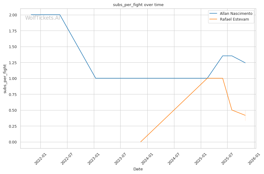 Grappling Mismatch: Nascimento's submission rate (1.28 per fight, recent: 1.32) against Estevam's static control approach creates a technical mismatch. Estevam's buggy chokes failed to threaten Bunes; they'll create scramble opportunities for Nascimento. Nascimento's guard work neutralized Hadley's top pressure; it will systematically dismantle Estevam's grinding style.