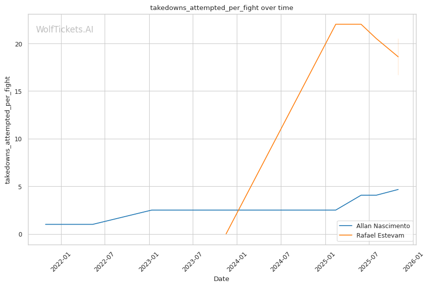 Early Rounds: Estevam will immediately pursue takedowns, unwilling to engage in striking where his deficiencies are pronounced. His 6.33 takedowns per fight on 16.67 attempts shows relentless pressure, but Nascimento's 200% takedown defense ratio (recent: 367%) suggests he'll stuff multiple attempts. When Estevam does secure top position, Nascimento will immediately threaten with submissions from guard. Expect triangles, armbars, and scrambles as Nascimento refuses to accept static control.