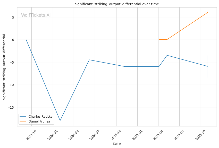 His significant striking defense sits at 61.26%—notably better than Radtke's 52.32%. Frunza's strike defense to offense ratio of 1.48 suggests he's landing more than he's absorbing when the exchanges happen.