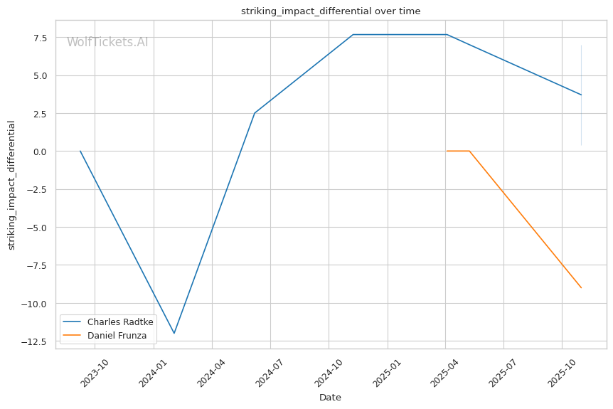 Striking Impact Differential increased the score by 1.0. Radtke's 0.4 overall striking impact differential suggests he's landing more meaningful shots than he's absorbing.