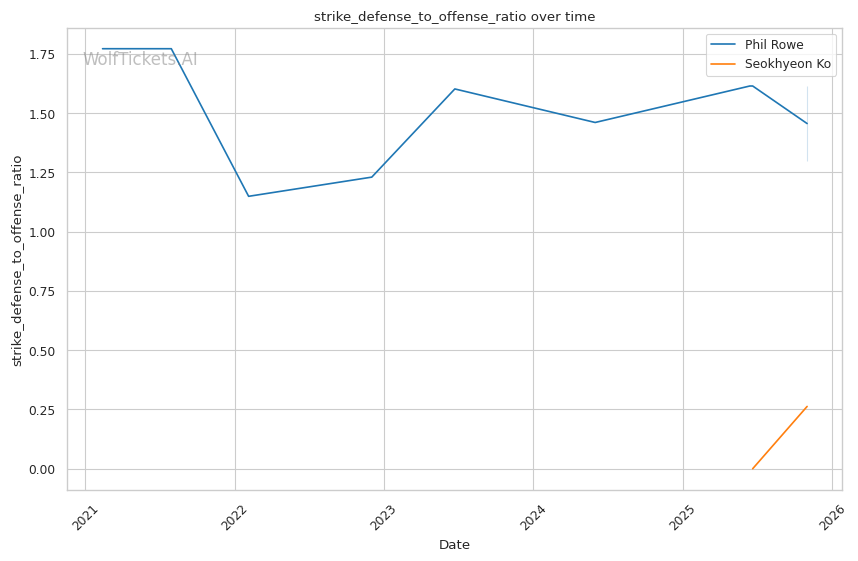 | Significant Striking Defense to Offense Ratio | 140.38% | 63.64% | 97.64% | |