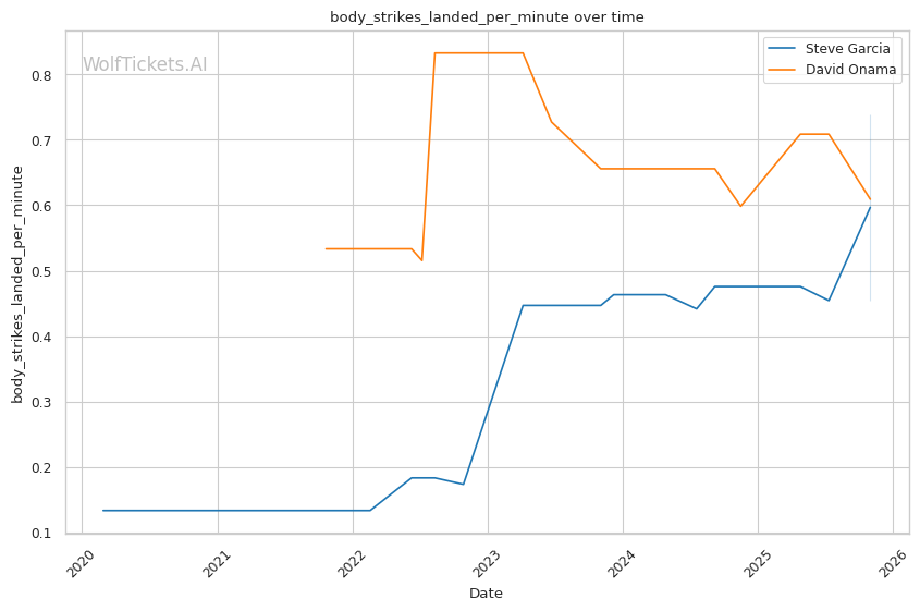 The fight's outcome likely hinges on whether Onama can force prolonged fence wrestling before Garcia accumulates body damage. Garcia's systematic striking and body attack precision versus Onama's fence control and scrambling ability creates genuine stylistic tension.