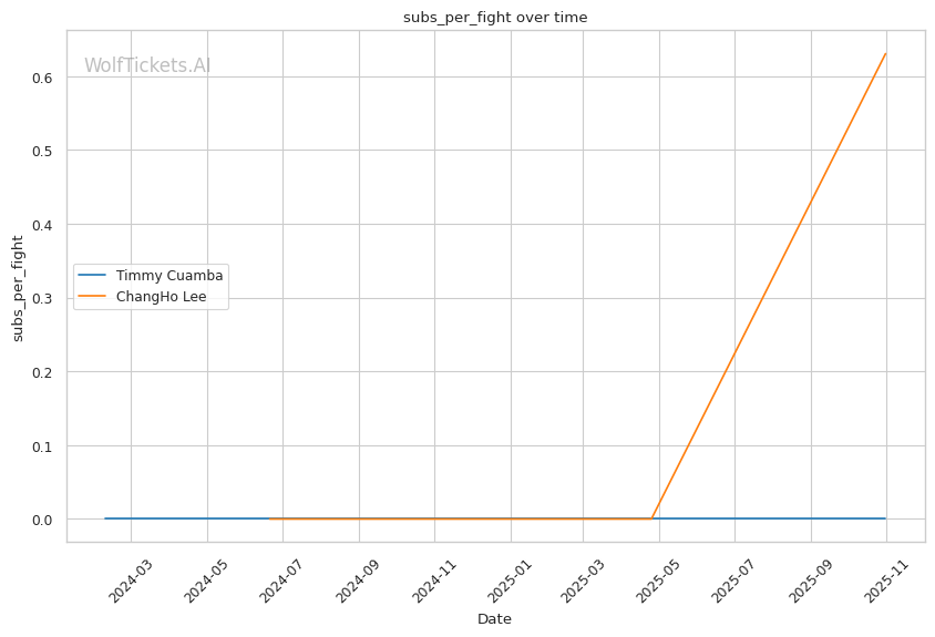 Lee's perfect takedown defense means we've never seen his guard game, sweep attempts, or submission defense from bottom position. If Cuamba lands one of his 5.78 takedown attempts per fight, Lee's response remains a complete unknown. His confidence in his takedown defense might make him less cautious about positioning, and Cuamba's aggressive ground-and-pound from the Almeida fight (winning Round 3 unanimously from top position) could exploit this gap. Lee's 0.63 submissions per fight suggests he hunts finishes from top, but can he defend them from bottom?