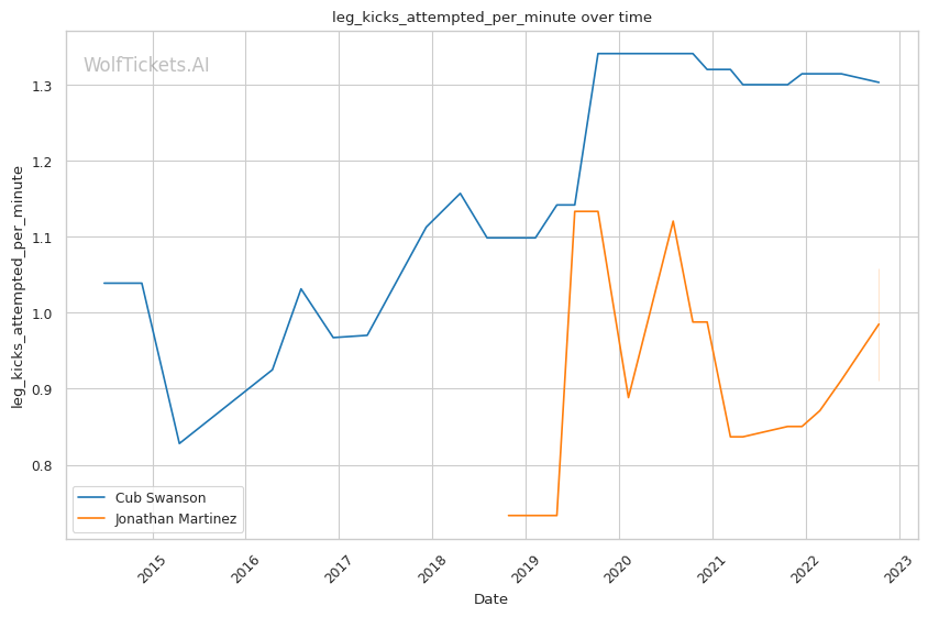 | Leg kicks Attempted per Minute | 1.303 | 1.059 | 0.828 | |
