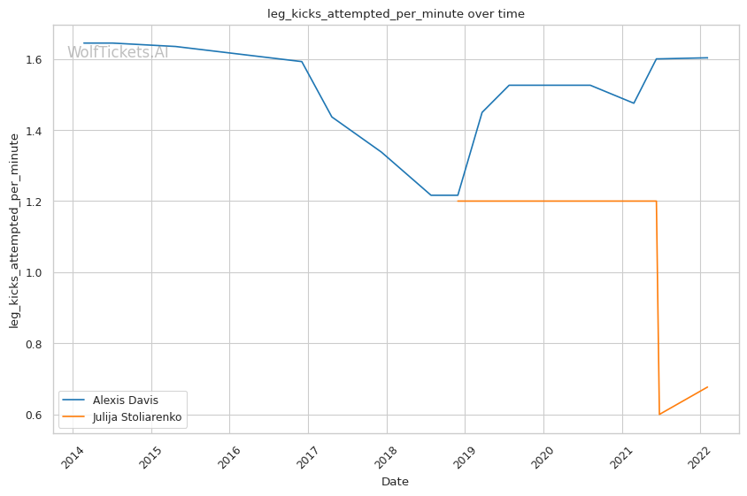 | Leg kicks Attempted per Minute | 1.606 | 0.677 | 0.900 | |