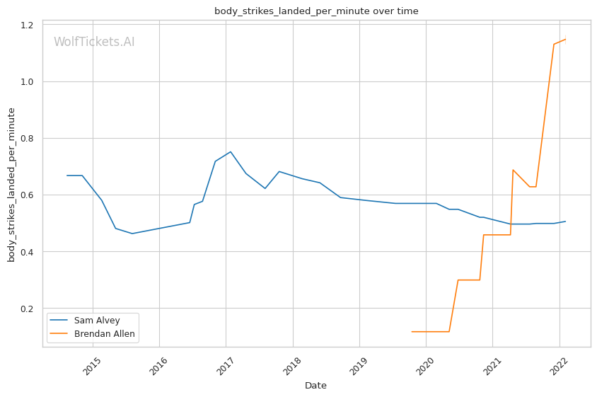 | Body Strikes Landed per Minute | 0.505 | 1.164 | 0.791 | |