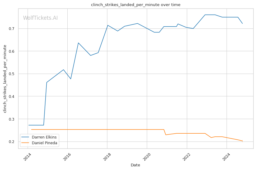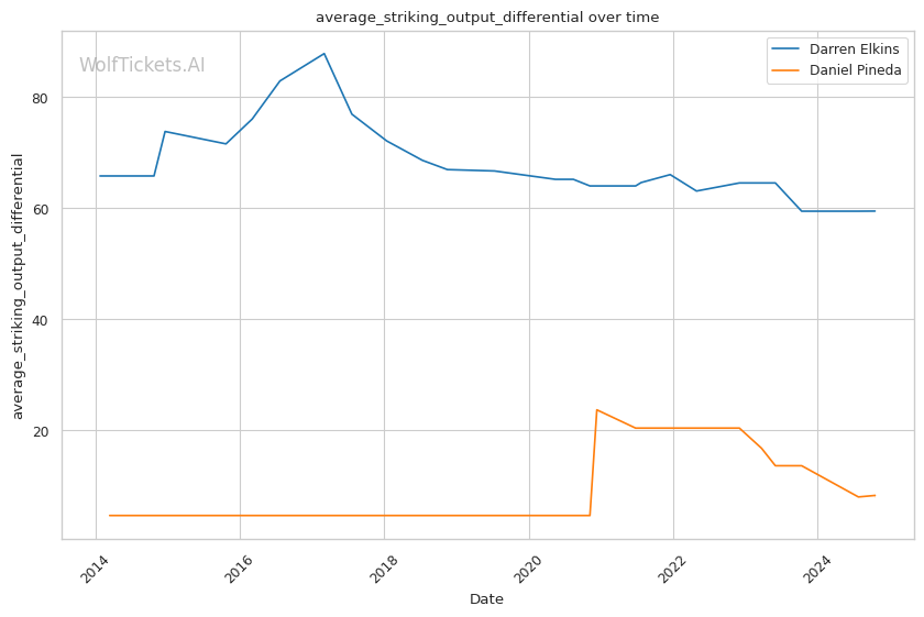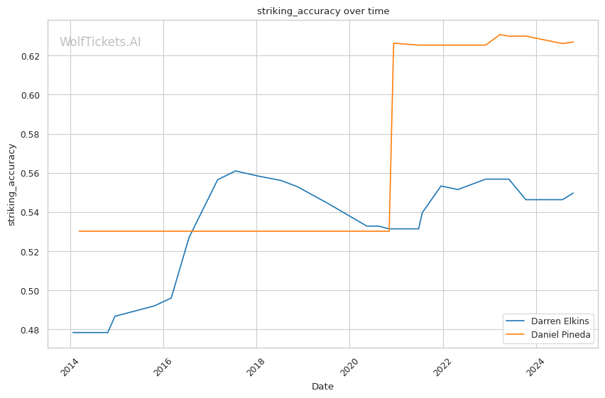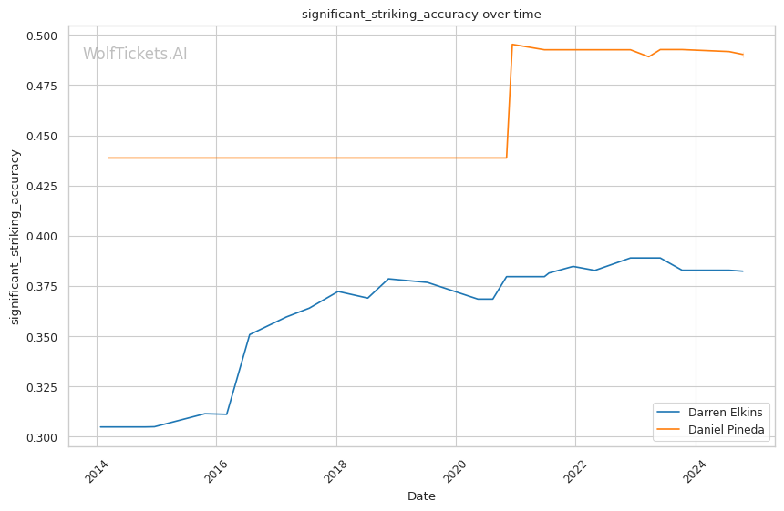 Striking Defense Percentage: Elkins absorbs strikes at a higher clip than Pineda (51.6% defended vs 66.2% for Pineda recently). However, Elkins' incredible chin and durability help negate this deficit.