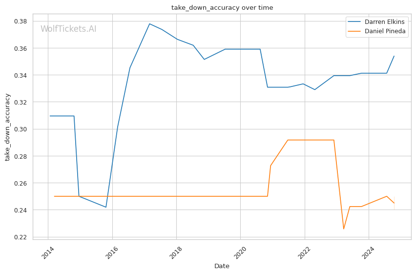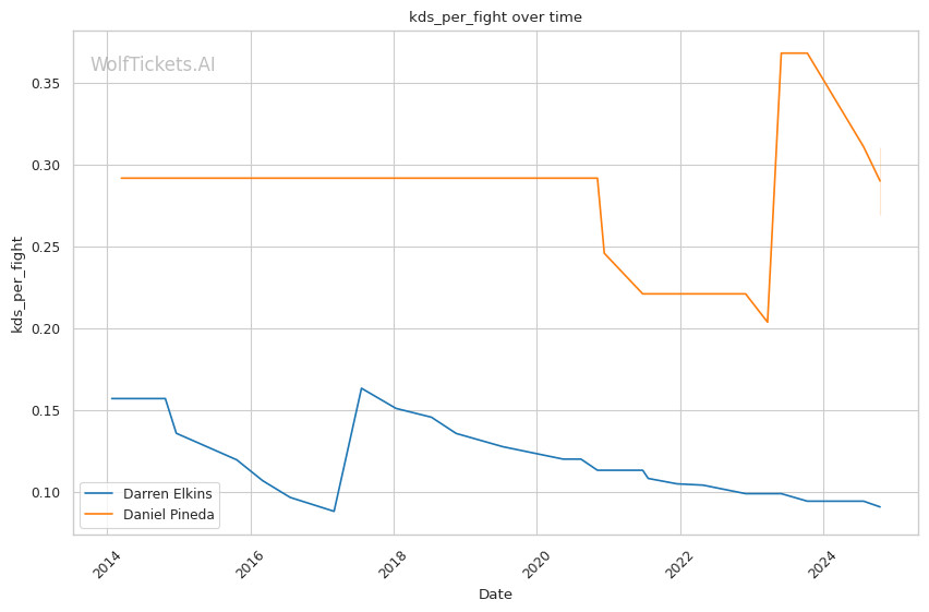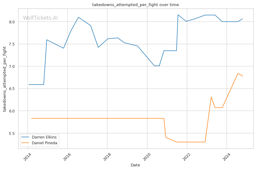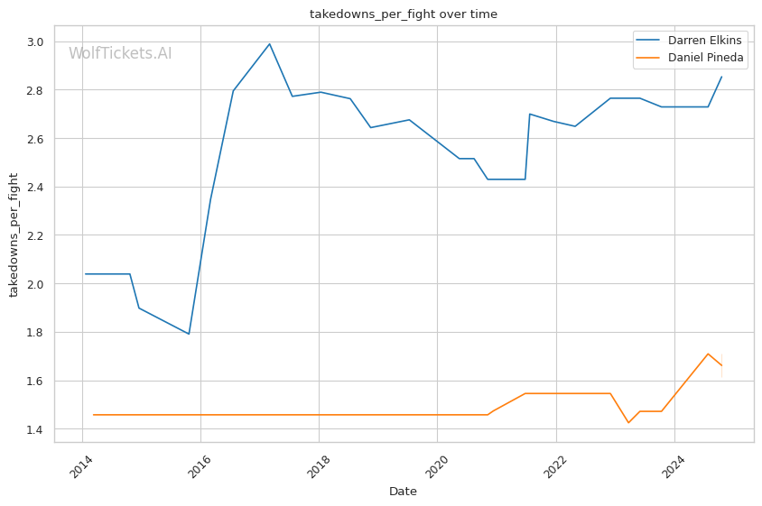 Recent Takedowns Attempted per Fight: Elkins averages a staggering 8.87 takedown attempts per fight in his recent outings. With Elkins' grapple-heavy style being a tough matchup for Pineda, this high takedown rate bodes well for Elkins.