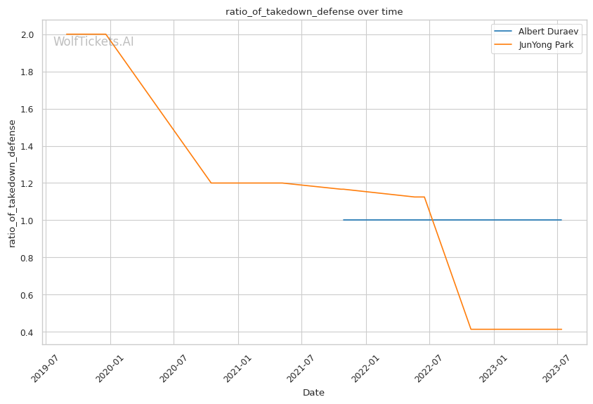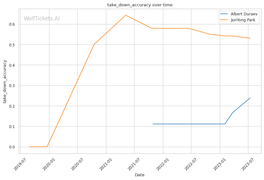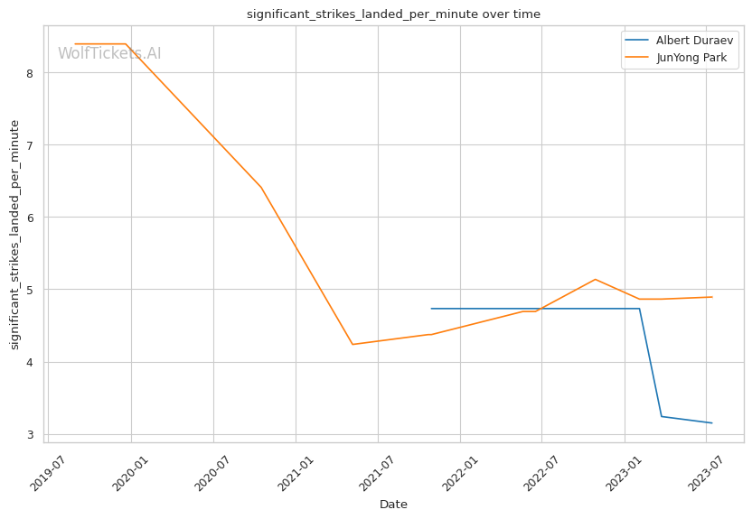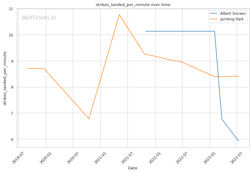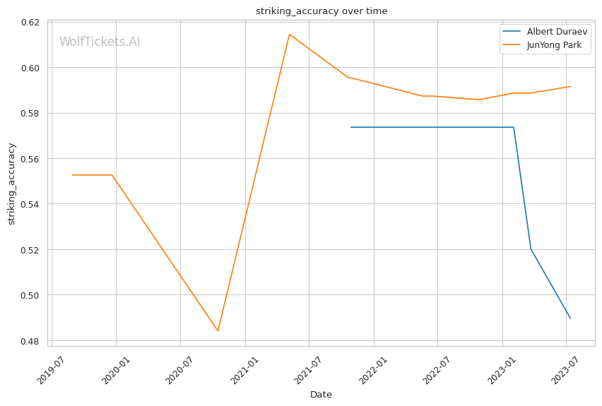 | Stat | Albert Duraev | JunYong Park | Weight Class Average | |