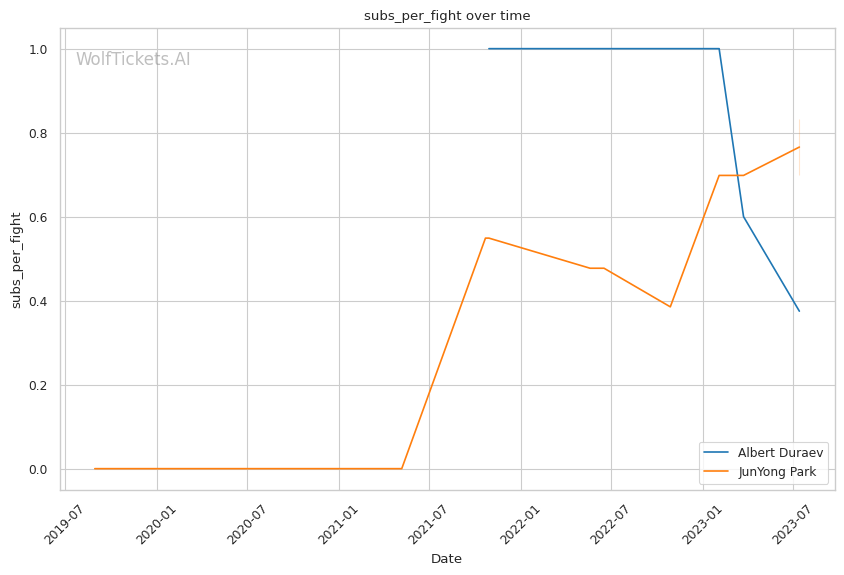 | Submissions per Fight | 0.375 | 0.833 | 0.601 | |