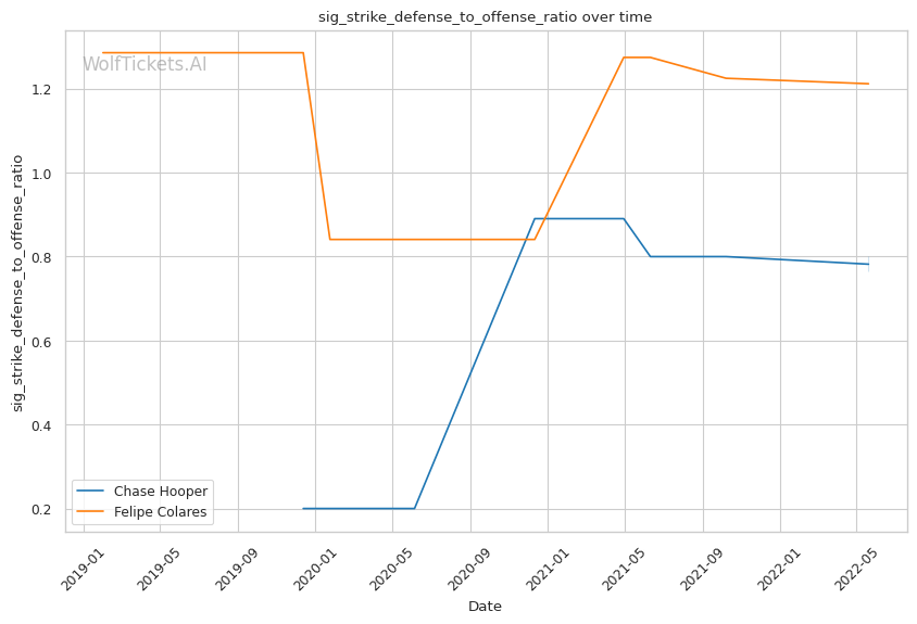| Significant Striking Defense to Offense Ratio | 76.40% | 121.18% | 124.38% | |