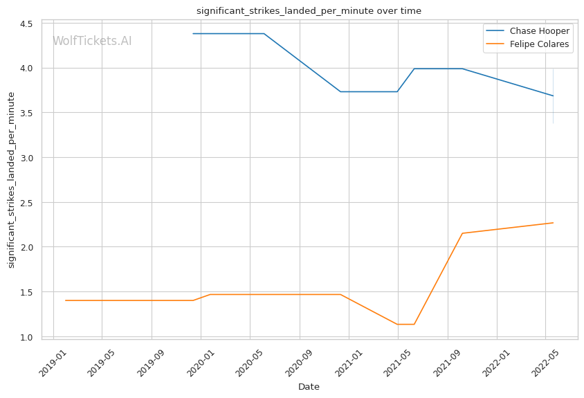 | Stat | Chase Hooper | Felipe Colares | Weight Class Average | |