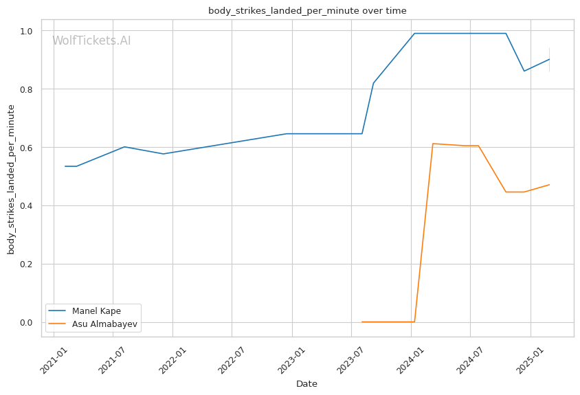 | Stat | Manel Kape | Asu Almabayev | Weight Class Average | |