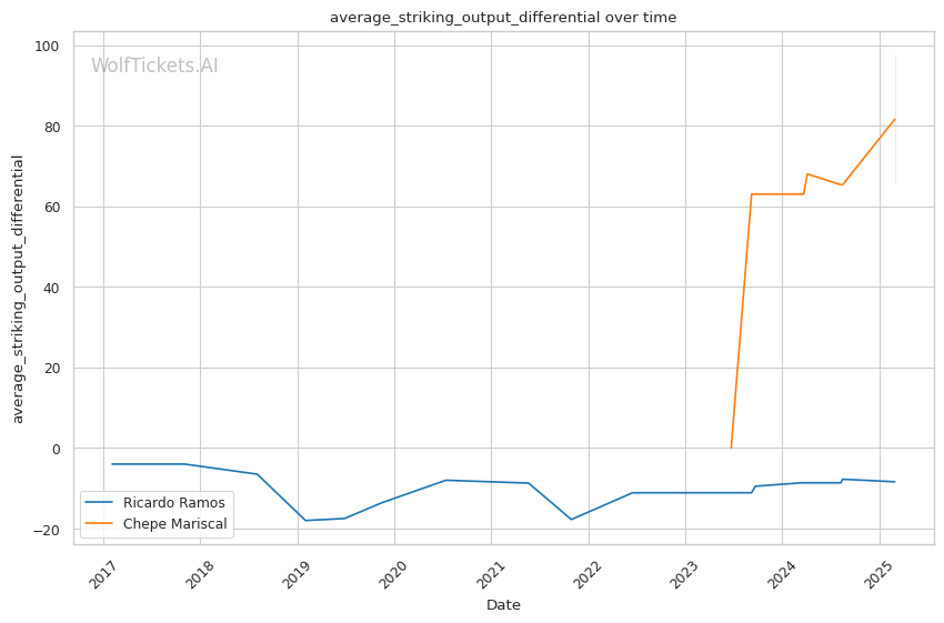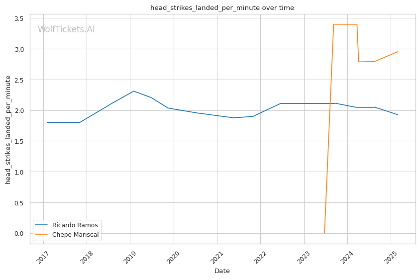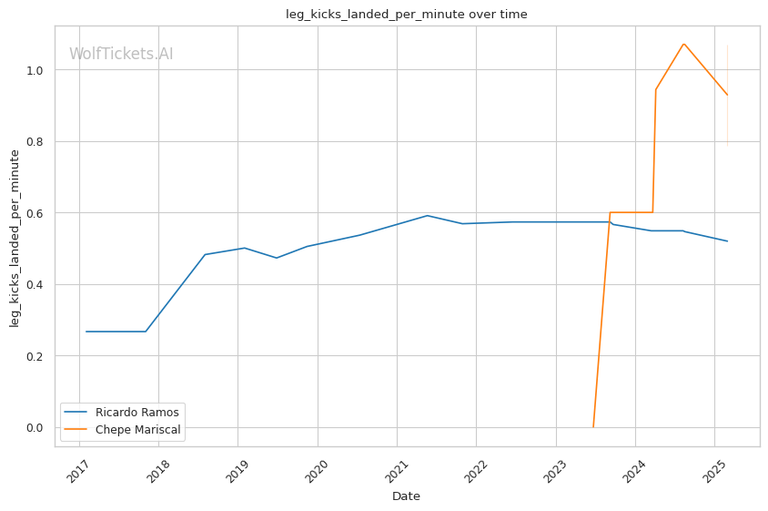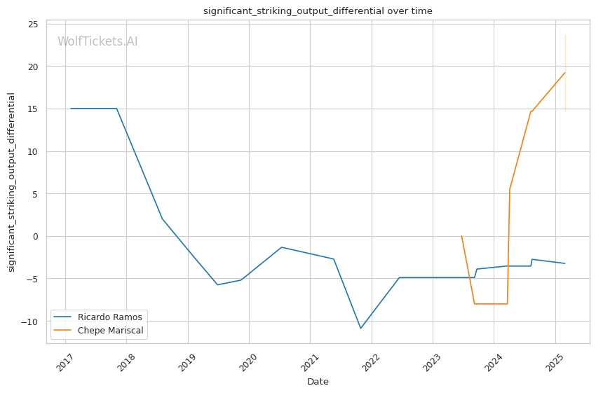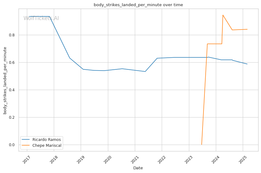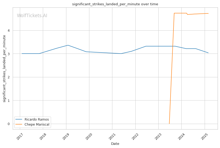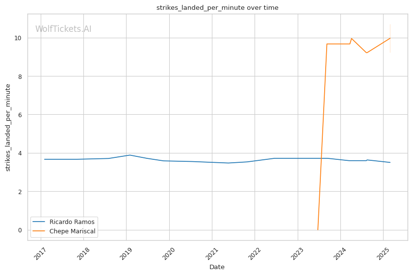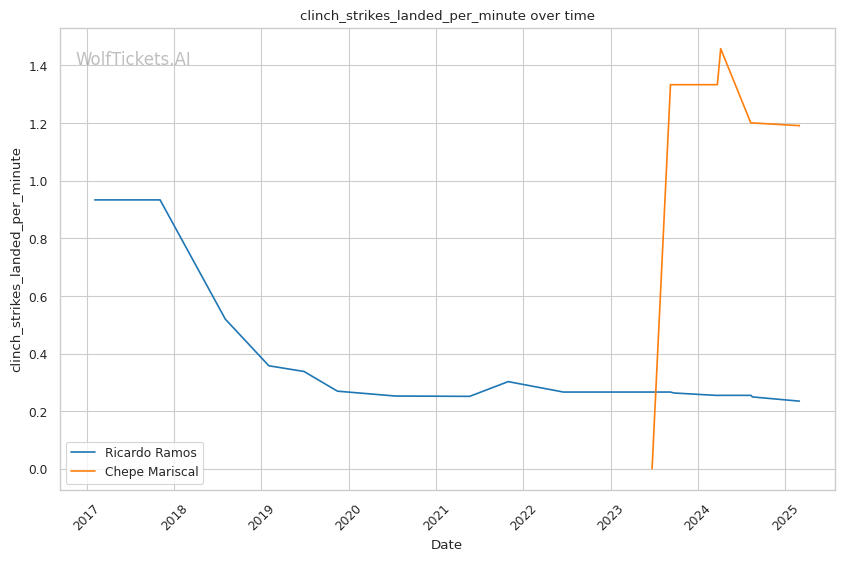 Striking Differential: Mariscal lands 10.7 strikes per minute compared to Ramos's 3.5, giving him a massive output advantage that helps win rounds.