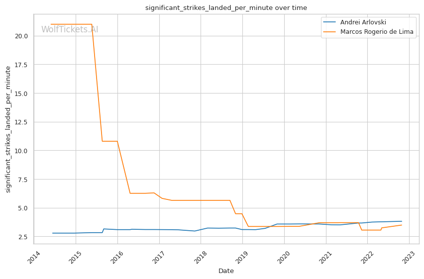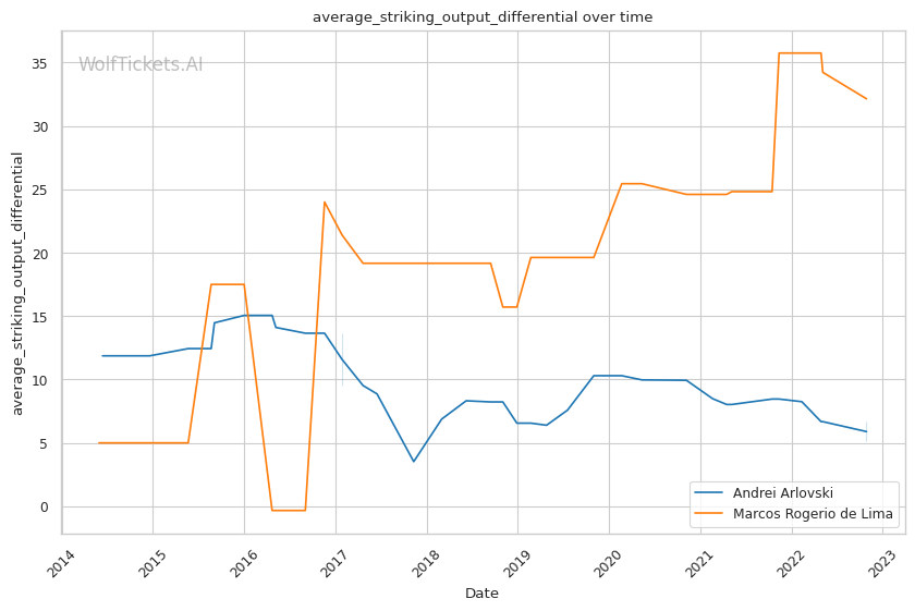 | Stat | Andrei Arlovski | Marcos Rogerio de Lima | Weight Class Average | |