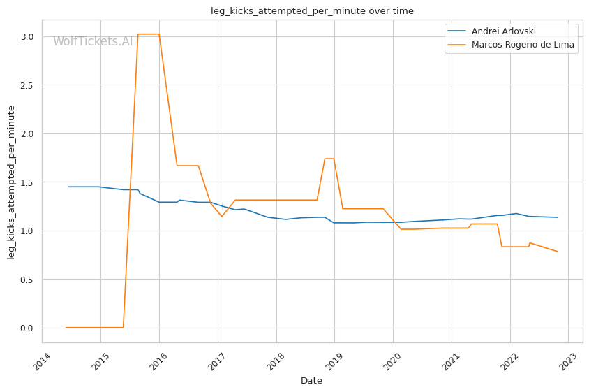 | Leg kicks Attempted per Minute | 1.125 | 0.782 | 0.889 | |