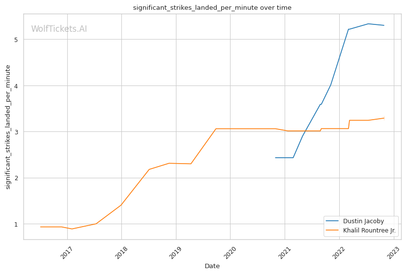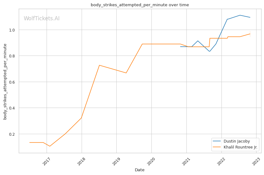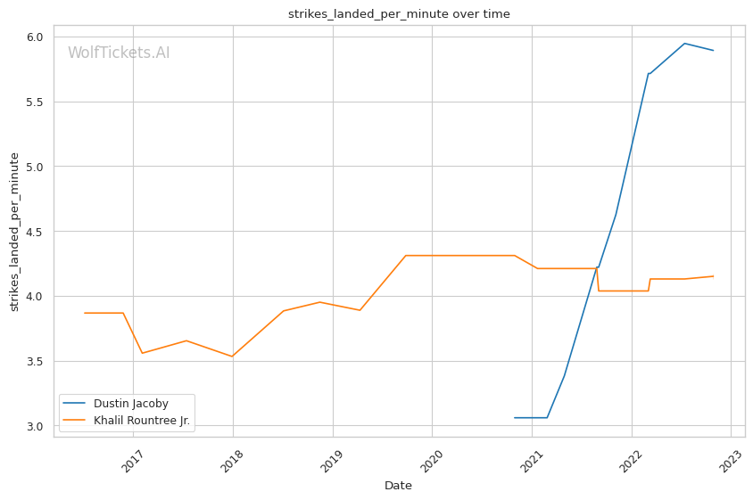 | Stat | Dustin Jacoby | Khalil Rountree Jr. | Weight Class Average | |