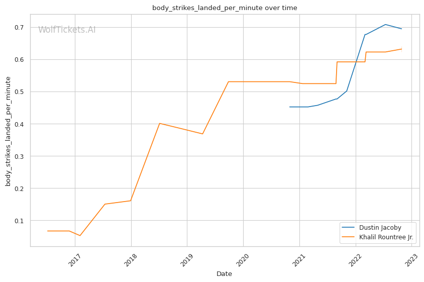 | Body Strikes Landed per Minute | 0.694 | 0.641 | 0.832 | |